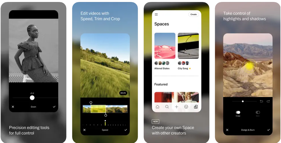 - VSCO Spaces 為創作者提供了一個安全的空間來討論想法、分享靈感並通過集體畫廊進行聯繫。