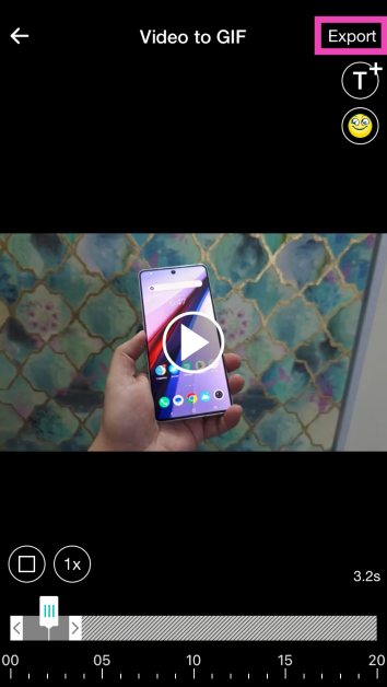 第4步:使用滑桿底部選擇 GIF 的時間範圍。您還可以選擇添加文字或貼紙。