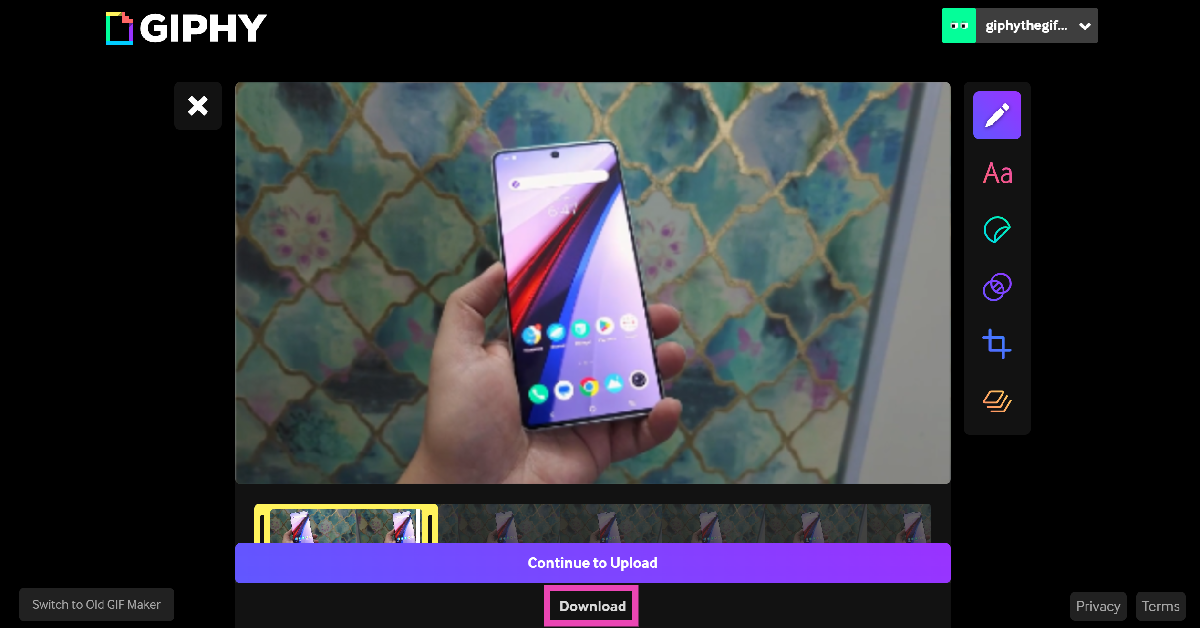 第9步:在下一頁上編輯 GIF。擊中軟盤圖標屏幕右上角節省動圖。
