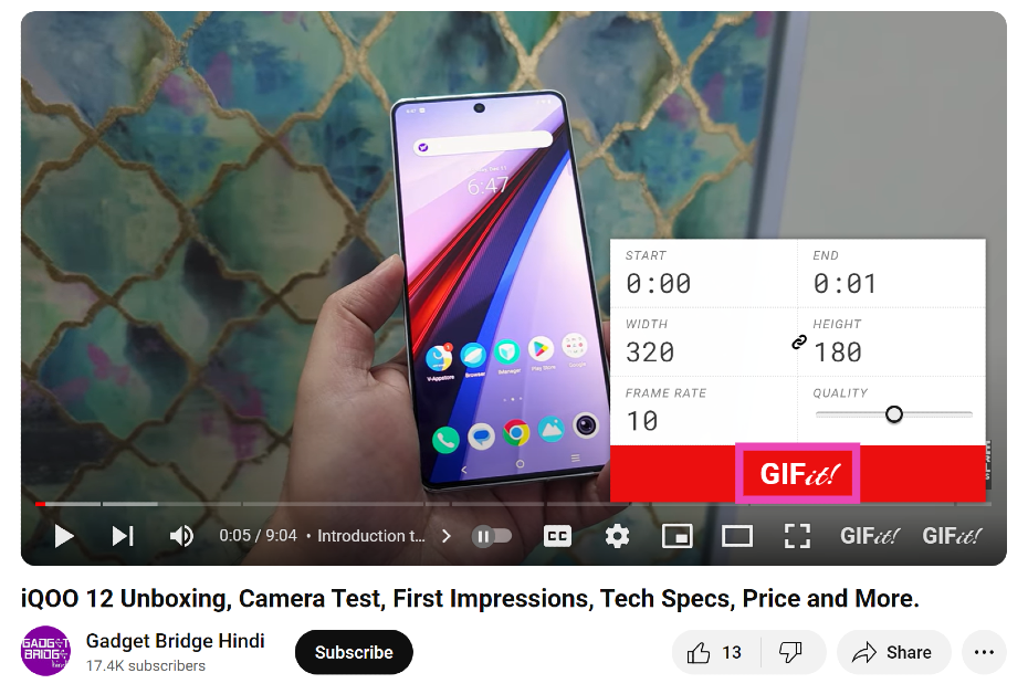 使用 GIFit! Chrome 擴展程序可從任何 YouTube 視頻 (PC) 創建 GIF