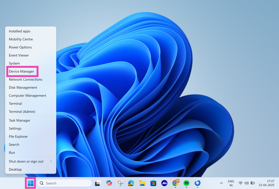 步驟一:右鍵單擊視窗圖標在任務欄中,然後單擊裝置經理。