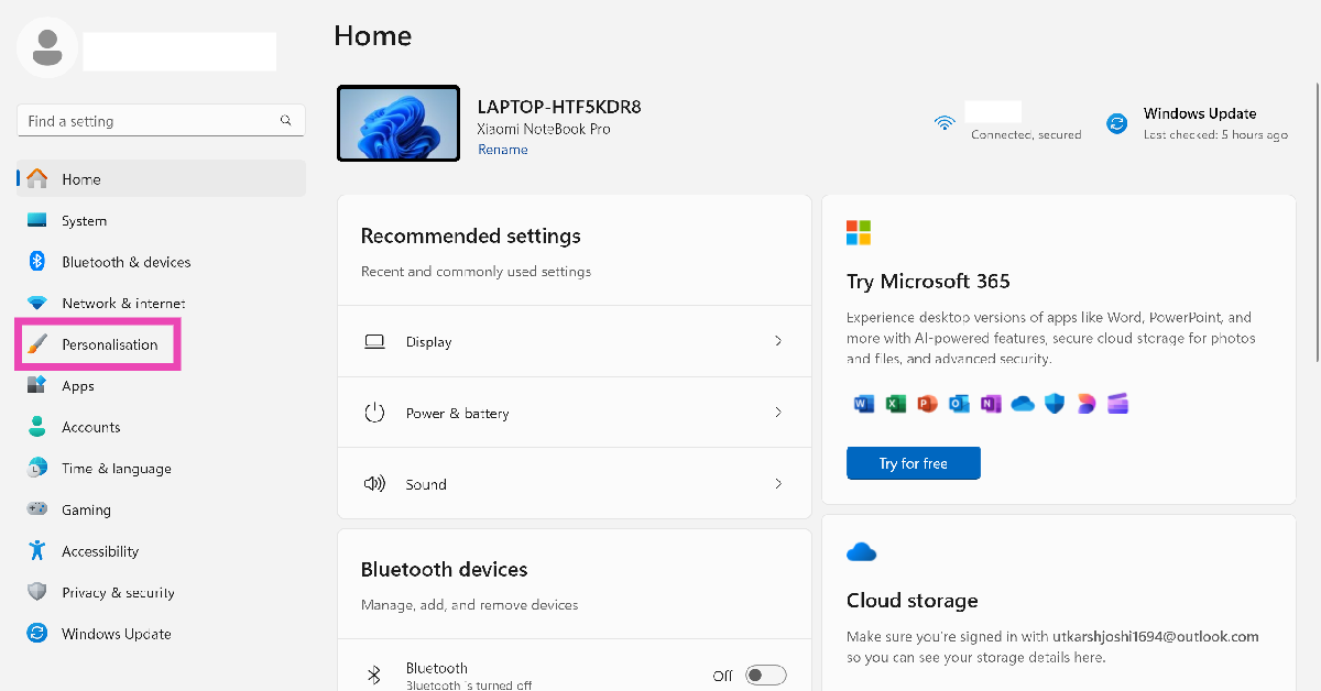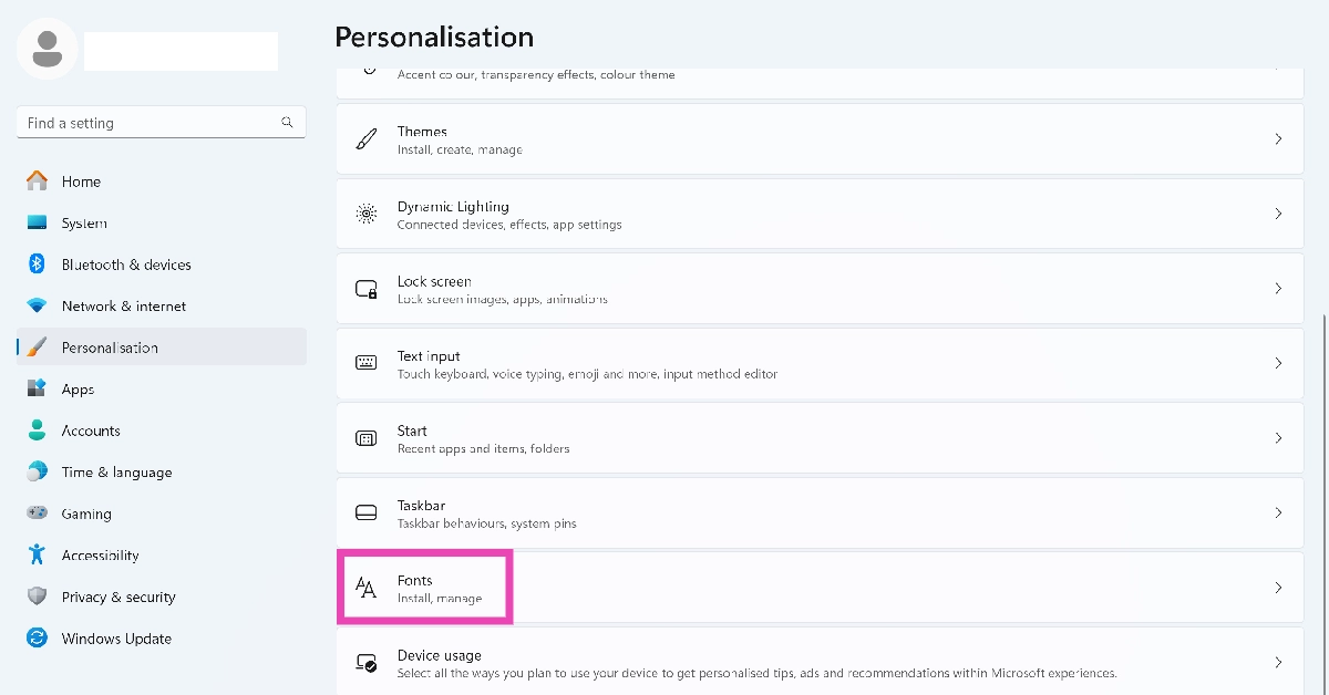 步驟一:前往設定並選擇個性化從側邊欄。