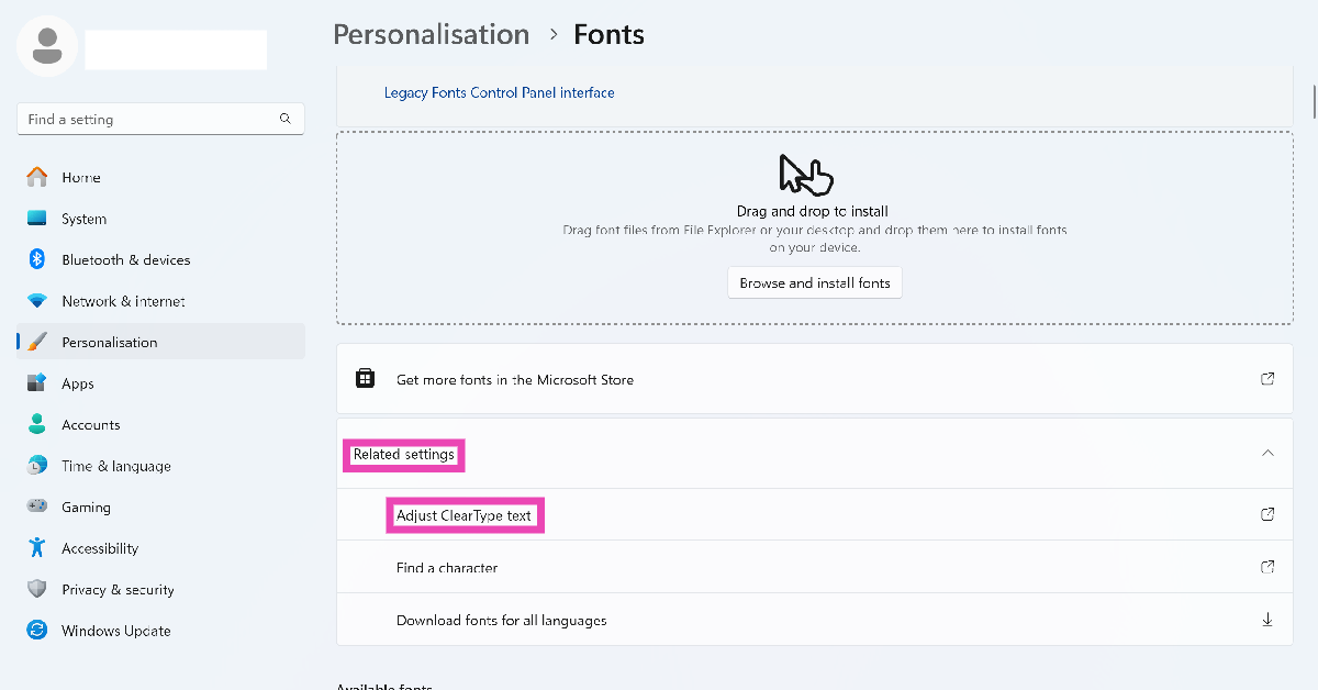 打開 ClearType 以修復模糊文本