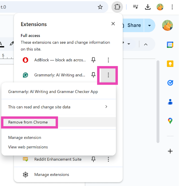 步驟6:如果語法在隱身模式下運行良好,則其他安裝的擴展名導致它故障在您的瀏覽器上。找到流氓擴展並卸載它。
