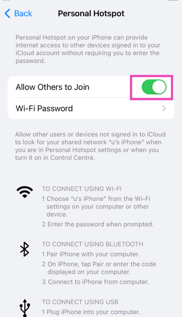 關閉個人熱點然後重新打開可以解決可能導致其無法工作的小問題。以下是您可以如何做到這一點。