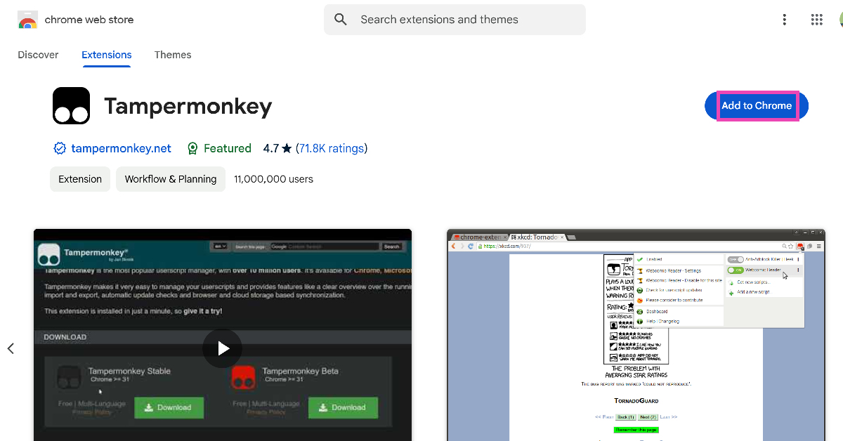 步驟一: 下載這Tapermonkey 擴展來自 Chrome 網上應用店。
