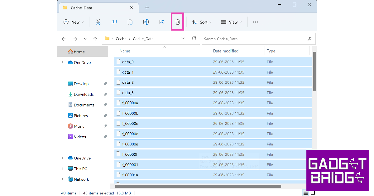 第5步:刪除Cache文件夾內的所有文件。