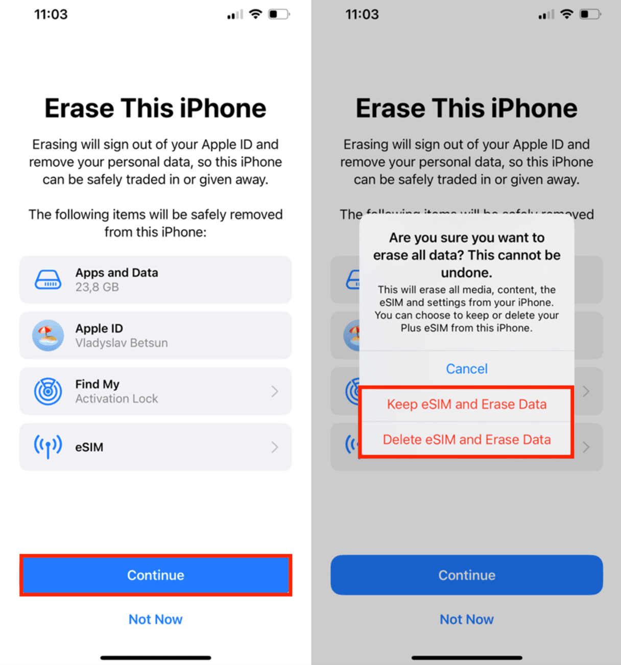 - 您的數據將被刪除。如果 Apple 解鎖您設備上的激活鎖,則設備上存儲的所有文件和數據都將被永久刪除。從本地備份恢復您的設備將重新啟用激活鎖。