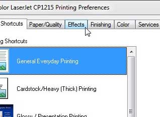 您可能不知道的是,您可以從此菜單將一些有趣的效果應用於您的打印作業。例如,可以向 HP Color Laserjet CP1215 添加水印您打印的文檔。