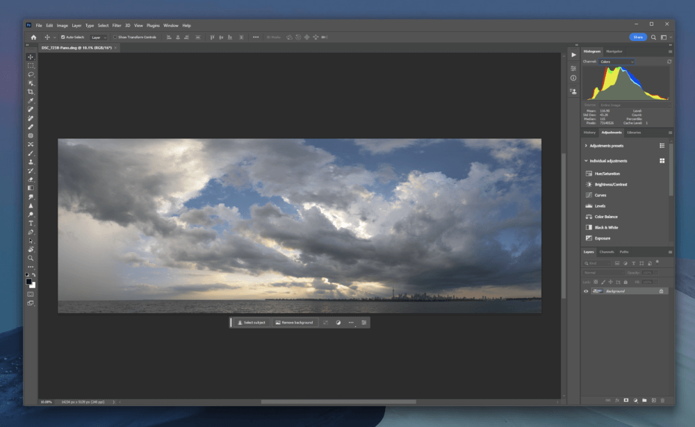 Photoshop 也使用人工智能,儘管它的重點是自動化手動編輯中更繁瑣的部分。它有助於改進自動對象檢測,可用於通過單筆描邊創建複雜的選擇、單擊選擇照片中的天空、自動背景去除以及其他節省時間的技巧。