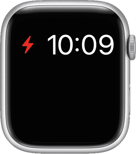 電池圖標提供了有關電池狀態的信息。當電池低時,會出現紅色閃電螺栓。這意味著它需要盡快收取費用。當連接到充電器時,充電圖標顯示為綠色閃電。這表明手錶目前正在收費。