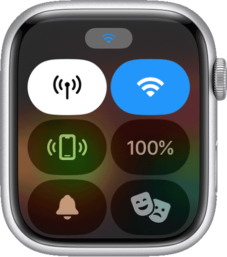 要激活飛機模式,請在手錶面上滑動以打開控制中心,然後點擊飛機圖標。活動當活動時圖標變橙色,表明所有無線通信均已關閉。再次敲擊圖標很容易切換。