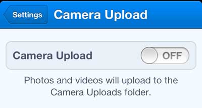 第 4 步:移動相機上傳的選項在位置。如果您從未在其他設備或計算機上啟用過相機上傳,那麼這將創建一個相機上傳您的 Dropbox 帳戶中的文件夾,該文件夾將存儲上傳的圖片。