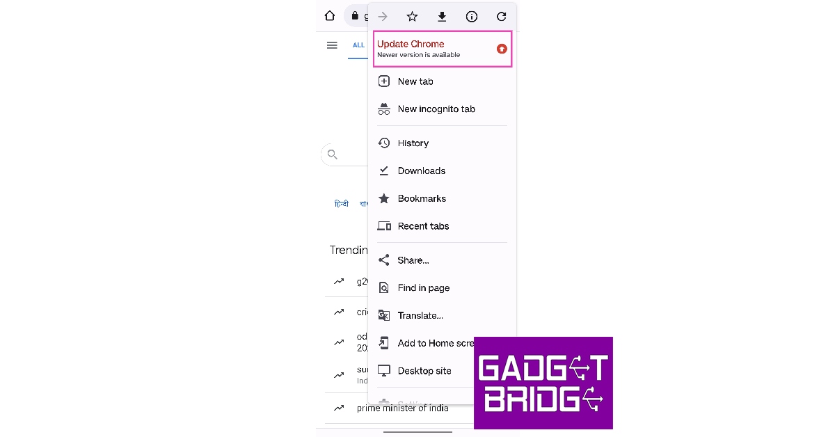 步驟2:點擊屏幕右上角的向上箭頭圖標。當 Chrome 有新的更新可用時,會出現此箭頭。