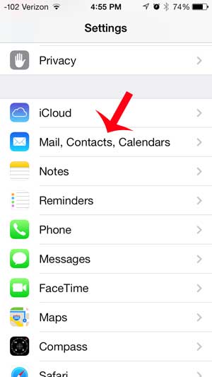 步驟 2:向下滾動並選擇郵件、通訊錄、日曆選項。