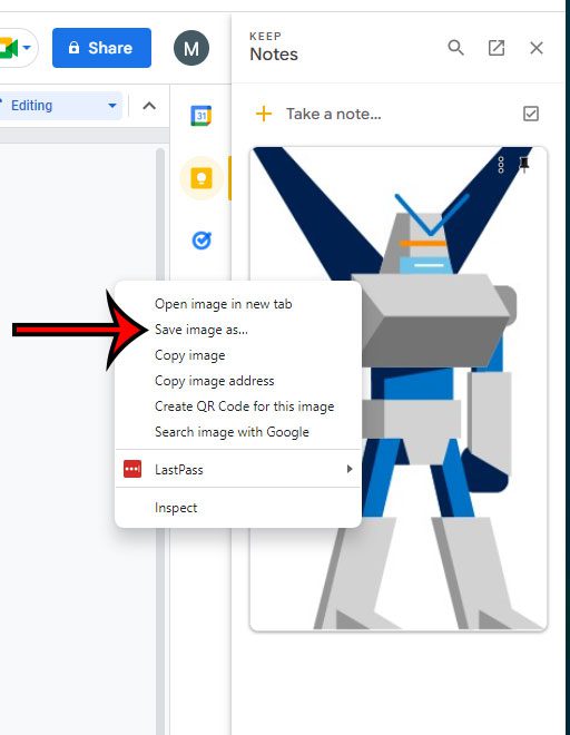 第5步:右鍵單擊Google Keep欄中的圖片,然後選擇將圖像另存為選項。