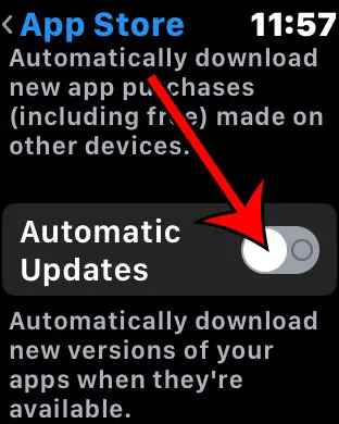 - 這自動的下載上面顯示的選項自動更新選項涉及您可能從 iPhone 或 Mac 等其他設備購買的應用程序。如果啟用該選項,那麼您的手錶將在識別這些購買的應用程序時自動安裝這些應用程序。