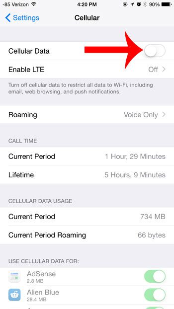 一種方法是簡單地關閉所有您設備上的蜂窩數據。當您執行此操作時,您將無法使用蜂窩數據進行任何操作,甚至無法使用電子郵件和社交媒體。