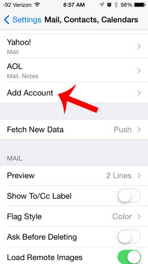 我們的指南在下面繼續提供附加信息,以回答“您是否可以在 iPhone 上擁有多個電子郵件帳戶”這一問題,包括這些步驟的圖片。
