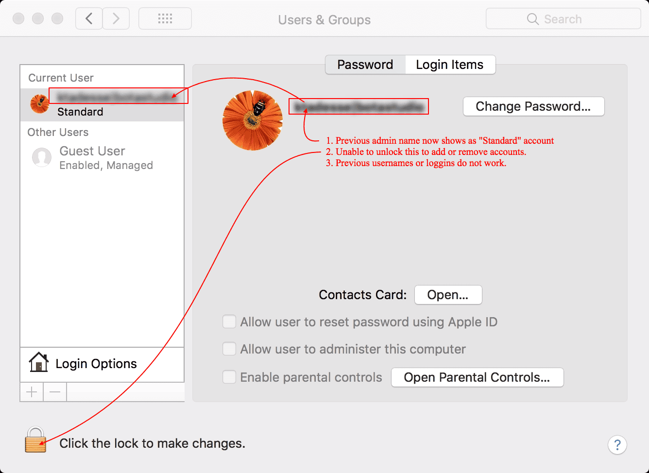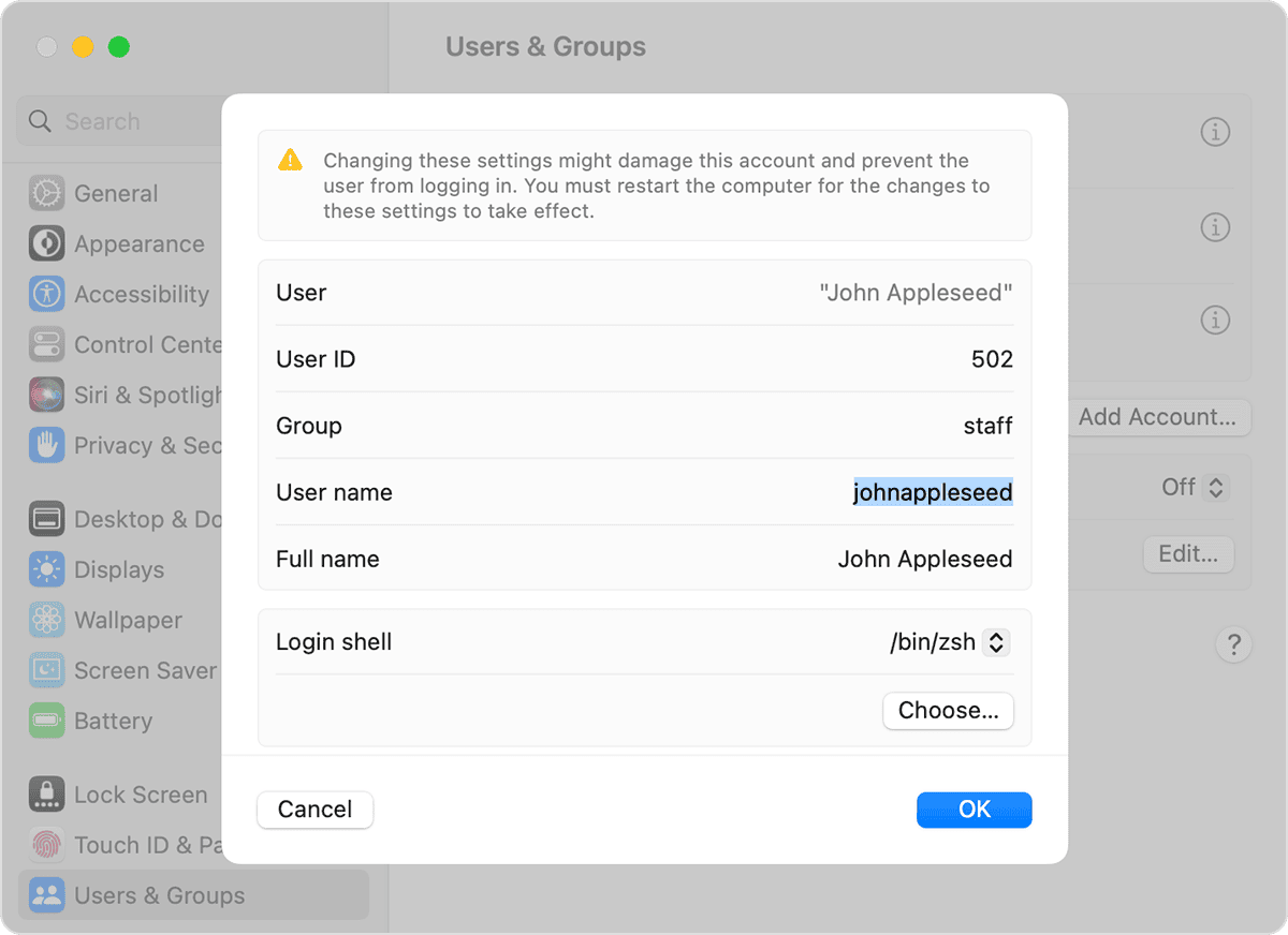 在進行此更改之前,請確保您的 Mac 上至少有一個其他管理員帳戶。這可以防止意外地將您鎖定在管理功能之外。更改帳戶類型後,用戶可能需要調整為對某些任務擁有較少的權限。