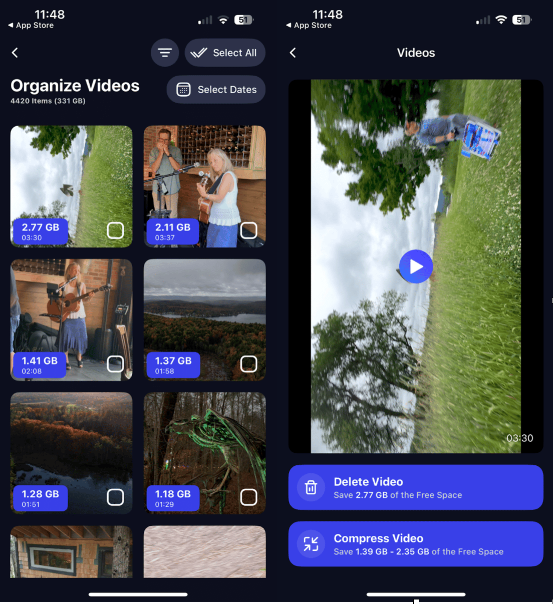 首先,我喜歡 CleanMy®Phone 的 AI 照片組織,它將照片和視頻分為旅行、人物、寵物、食物和建築等類別,因此易於管理。該應用程序還可以快速將實時圖片轉換為靜態圖像,只需點擊一下即可節省大量空間。