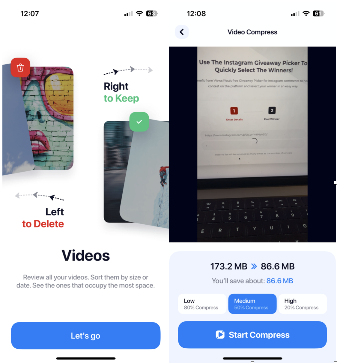 核心照片清理工具仍然位於最前面和最中心:您可以滑動瀏覽重複的照片、模糊的快照、屏幕錄製和相似的視頻。它不會將任何內容上傳到雲端,所有刪除都需要用戶批准,這讓我在測試時更加安心。