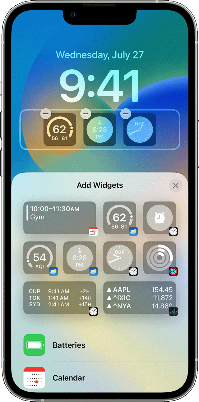 要添加或重新排列小部件,請按住鎖定屏幕。點擊“自定義”,然後點擊“添加小部件”。然後,您可以將小部件拖動到您喜歡的位置。