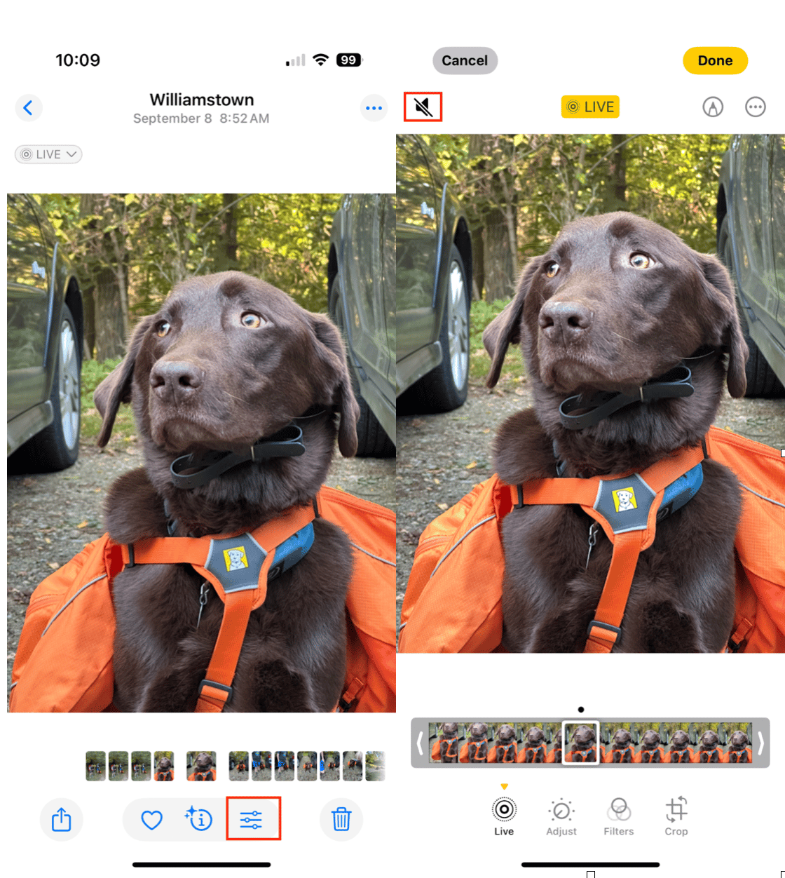 絕對地。 Apple 為您提供了直接在“照片”應用中將實時照片靜音或取消靜音的選項。您無法像編輯視頻一樣編輯聲音(例如修剪或調整音量),但如果您不想在查看或共享照片時包含聲音,則可以將其關閉。