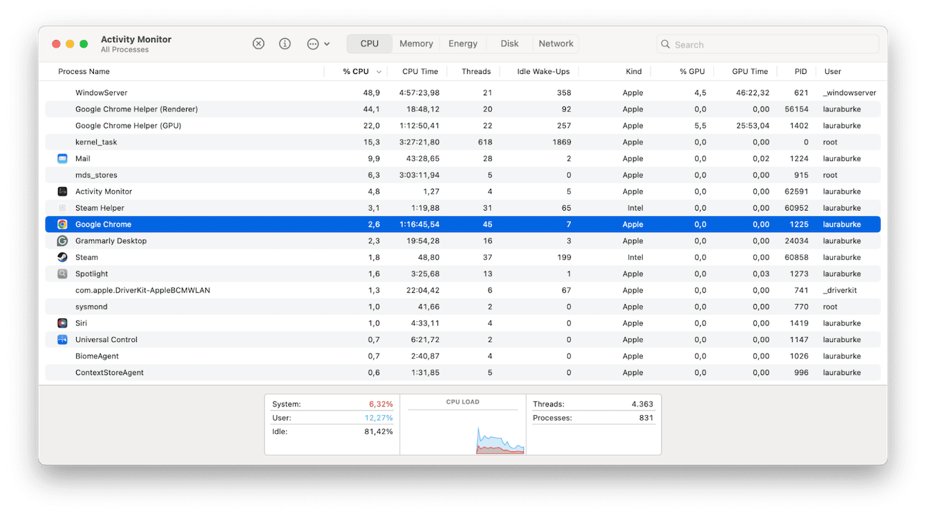使用活動監視器檢查打開的項目並關閉不需要運行的項目;方法如下: