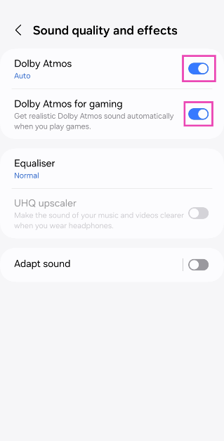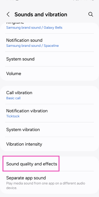- 前往設置>聲音和振動>音效並檢查是否有啟用杜比全景聲的選項