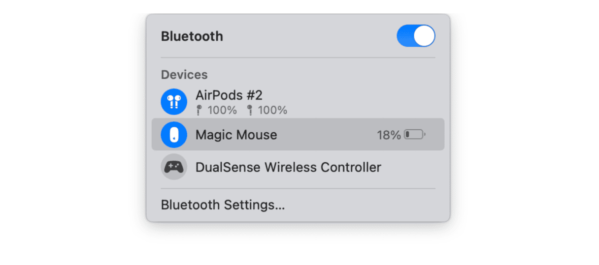 如果您可以為鼠標充電(例如 Apple 的 Magic Mouse),那就充電吧。您可以首先通過單擊控制中心的藍牙圖標或轉至系統設置 > 藍牙並在其中查找此信息來檢查是否已充電。