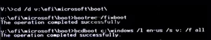 步驟3。輸入“bootrec/fixboot”圖標後單擊 Enter 按鈕。輸入“ren.BCD BCD.bak”並按 Enter 圖標重命名 BCD doke。