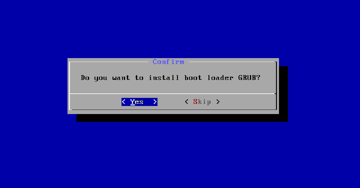 第6步:選擇“是”安裝引導加載程序 Grub。