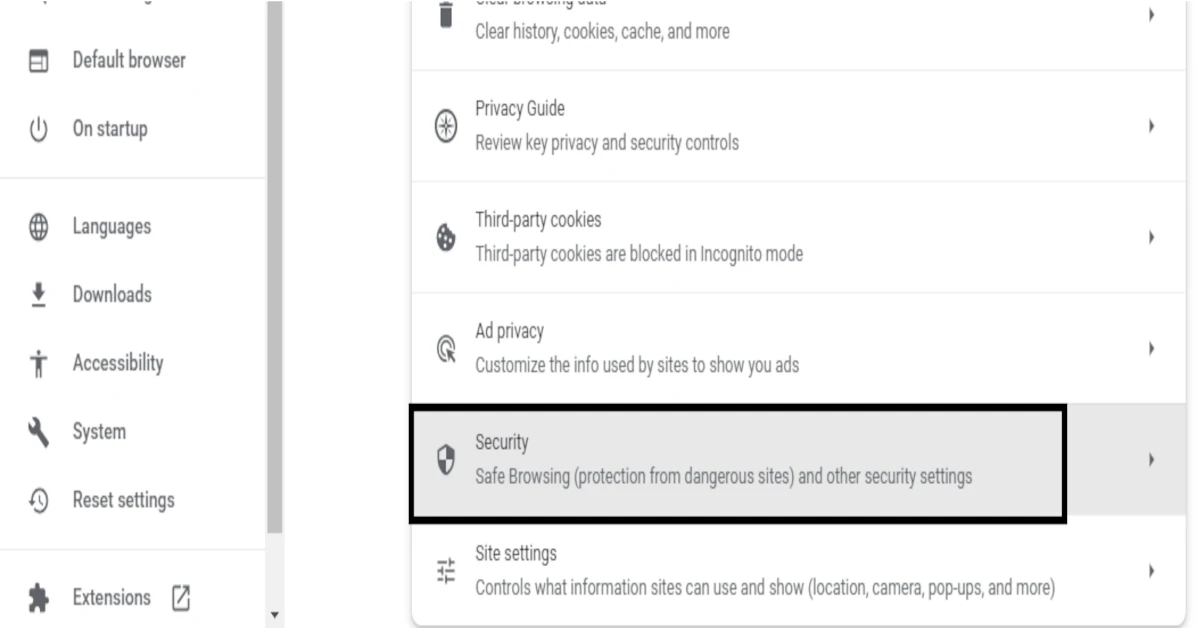 3. 向下滾動至您帳戶的增強安全瀏覽