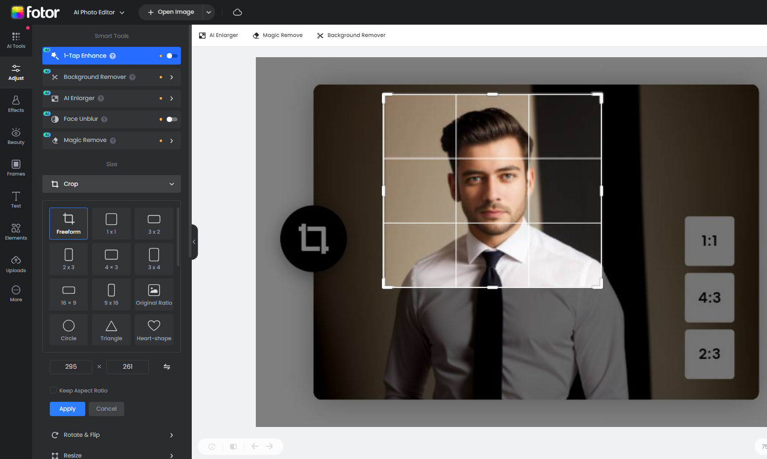 使用頭像裁剪工具 – Fotor imagecropper,您將輕鬆了解如何創建或裁剪標準頭像照片尺寸。 Fotor 照片編輯器可讓您一鍵裁剪頭像尺寸。使用預設的頭像圖片尺寸模板,您可以在幾秒鐘內將頭像裁剪為任何尺寸和形狀。