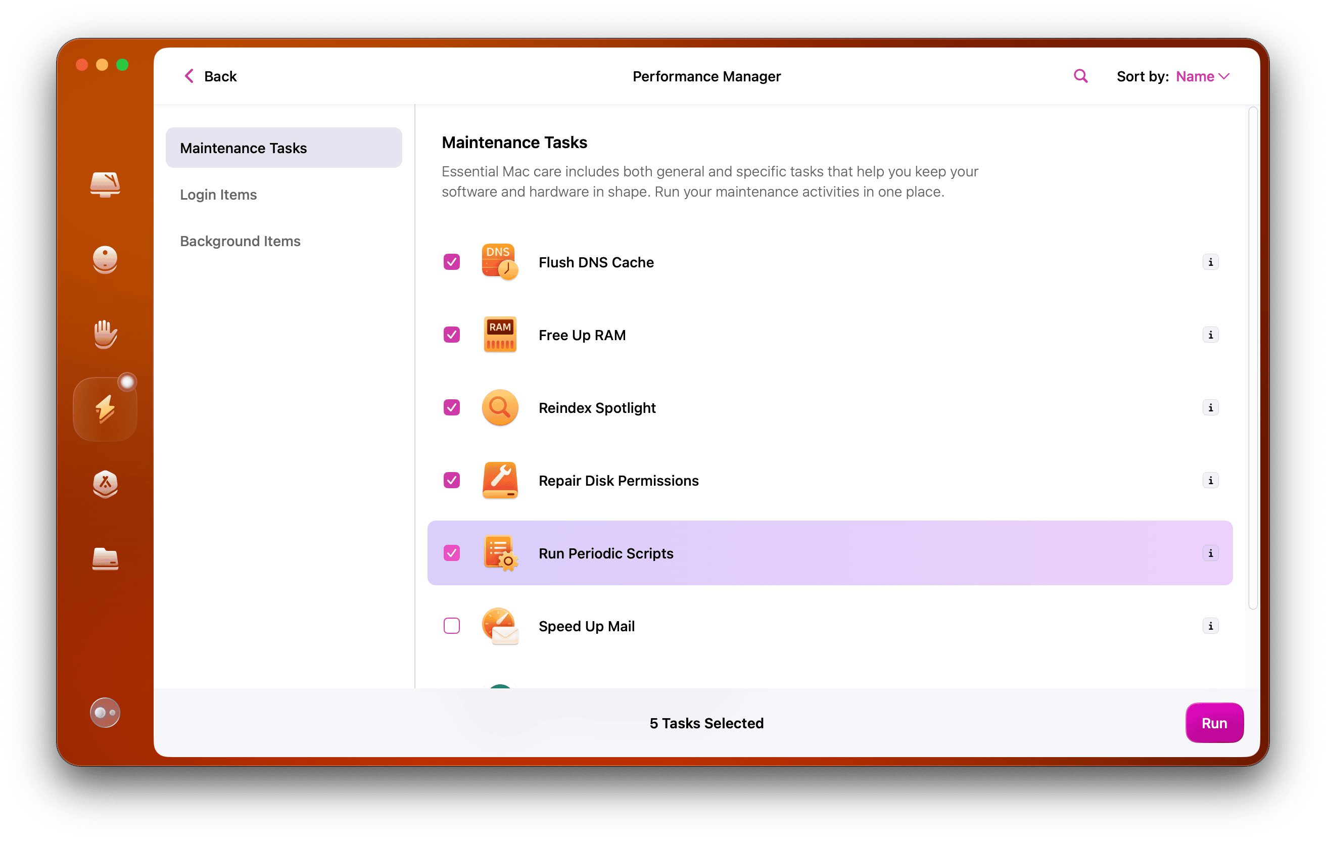 最簡單的方法是使用我之前提到的應用程序 CleanMyMac。這個聰明的應用程序可以快速自動地進行定期維護。它的工作原理如下: