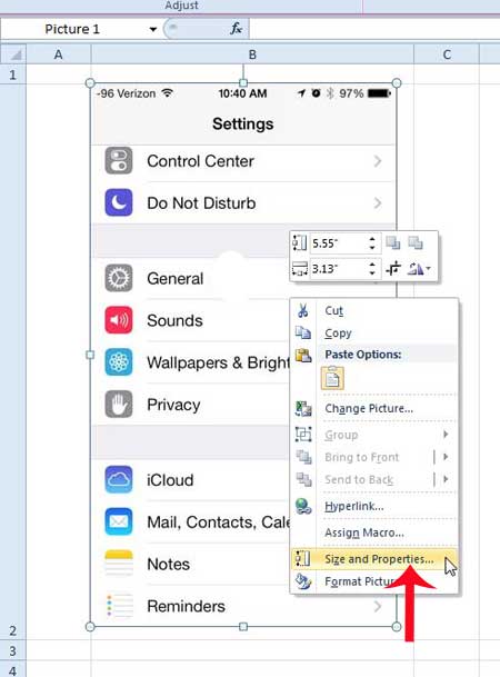 您可以選擇設置圖像,以便它可以使用單元格移動和調整大小或者移動但不調整單元格大小。