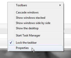 步驟 1:右鍵單擊屏幕上當前位置的任務欄,然後單擊特性。