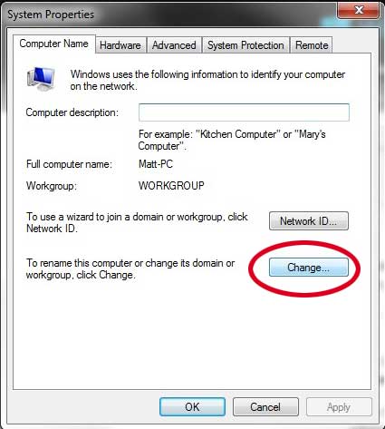 第 4 步:單擊改變按鈕位於底部計算機名稱選項卡。