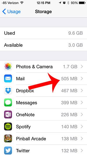 第 5 步:找到郵件選項。它右側的數字是應用程序正在使用的空間量。