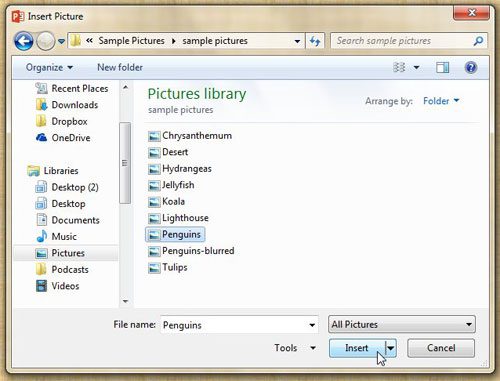 第6步:瀏覽到要設置為背景的圖片,單擊一次將其選中,然後單擊插入按鈕位於窗口底部。
