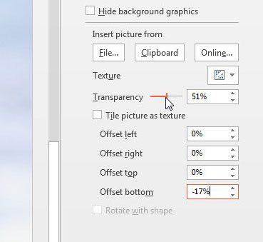 您可以對背景圖片進行一些更改,例如調整透明度和使圖片偏離中心,這樣您就可以修改圖片在幻燈片上的顯示方式。