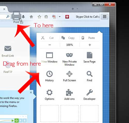 第 4 步:單擊列印圖標並將其拖至瀏覽器窗口頂部的工具欄,然後在到達所需位置時鬆開。