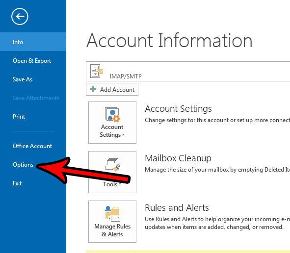 第 3 步:單擊選項按鈕位於窗口左側列底部。