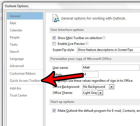 第 4 步:單擊快速訪問工具欄左側的選項卡展望選項窗戶。