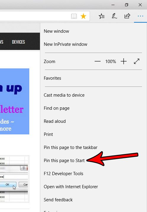 本文中的步驟將向您展示如何使用 Microsoft Edge Web 瀏覽器中的一項功能,您可以將特定網頁固定到“開始”菜單。 “開始”菜單是屏幕左下角的 Windows 徽標,單擊該菜單即可啟動程序。您固定到“開始”菜單的網頁將位於菜單底部、“開始”菜單右側磁貼之間。