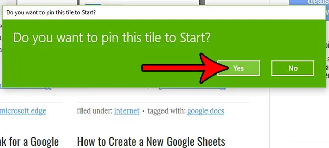 第 5 步:單擊是的按鈕以確認您要將網頁磁貼添加到“開始”菜單。