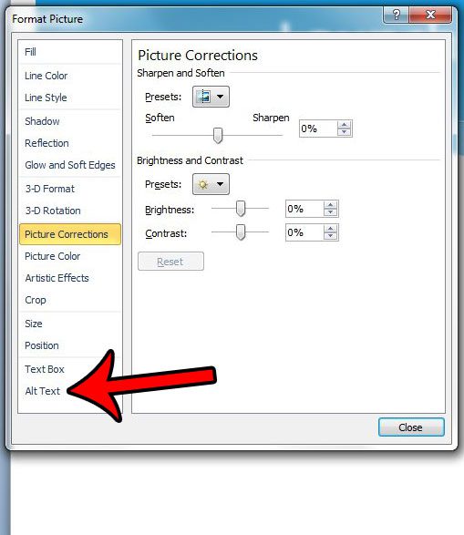 第 4 步:單擊替代文本左欄中的選項設置圖片格式窗戶。