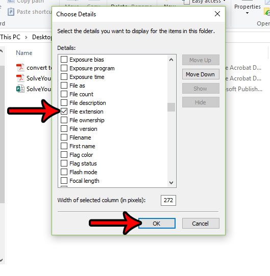 對於這種特定場景,您還可以選擇啟用文件擴展名,這只會將文件擴展名添加到文件名中,而不是添加另一列。