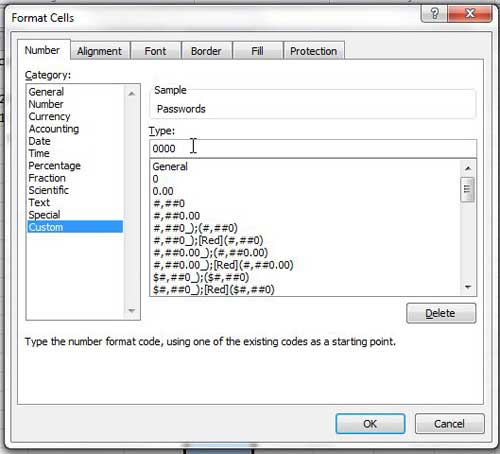 如果您不專門使用郵政編碼、電話號碼或社會安全號碼,那麼使用“類別”列中的“自定義”選項可能是理想的選擇。例如,如果您使用 UPC 代碼,則在“類型”字段中輸入所需位數的自定義格式將是最有效的。